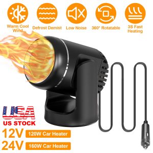 24V 160W Or 12V 120W Portable Car Heater 2 In 1 Heating Cooling Fan Rotatable Demister Defroster With 4.92ft Cord