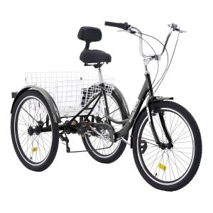 Adult Tricycles Bike, 7 Speed Adult Trikes, 20 Inch Three-Wheeled Bicycles, Carbon Steel Cruiser Bike With Basket And Adjustable Seat, Picnic Shopping Tricycles For Seniors, Women, Men (Black)