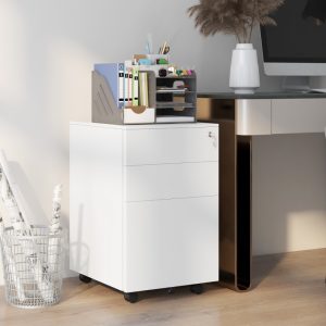 Installation Required 3-drawer Mobile Filing Cabinet With Lock, Office Storage Filing Cabinet Of Legal Letter Size, Metal Filing Cabinet To Be Installation Required White
