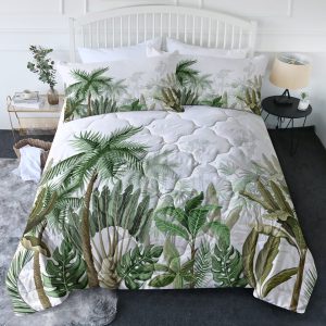 3pcs Coconut And Banana Leaf Pattern Comfortable Duvet Cover Set, Double Bed Minimalist Style, Including 1 Duvet Cover And 2 Pillowcases