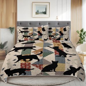 3pcs Of Black Cat Multi Posture Pattern Blanket Set All Season Bedding, 2 Pillowcases For Children, Teenagers, And Adults, Suitable For Bedrooms