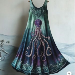 Women’s European And American 3d Printed Casual V-neck Wave Loose Dress