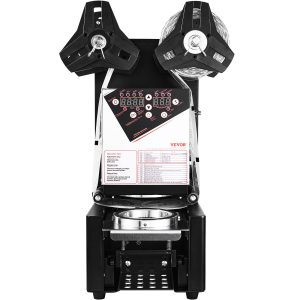 Fully Automatic Cup Sealing Machine, 500-650 Cups/H, Cup Sealer Machine For 190 Mm Tall & 90/95 Mm Cup, Electric Tea Sealer With Digital Control LCD Panel For Bubble Milk Tea Coffee, Black