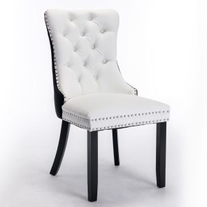 A&A Furniture,Nikki Collection Modern,High-end Tufted Solid Wood Contemporary PU And Velvet Upholstered Dining Chair With Wood Legs Nailhead Trim 2 Pcs Set,White Black