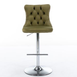 Swivel Velvet Barstools Adjusatble Seat Height From 25-33 Inch, Modern Upholstered Chrome Base Bar Stools With Backs Comfortable Tufted For Home Pub And Kitchen Island, Olive-Green,Set Of 2,1712OL