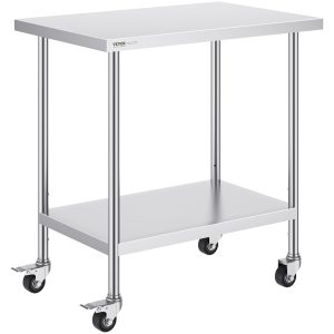 Stainless Steel Work Table 30 X 48 X 38 Inch, With 4 Wheels, 3 Adjustable Height Levels, Heavy Duty Food Prep Worktable For Commercial Kitchen Restaurant, Silver