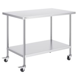 24 X 60 X 40 Inch Stainless Steel Work Table, Commercial Food Prep Worktable With Casters, Heavy Duty Prep Worktable, Metal Work Table With Adjustable Height For Restaurant, Home And Hotel