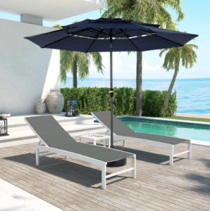 Aluminium 10ft 3 Tier Auto-tilt Umbrella ,Outdoor Patio Umbrella – Market Table Pool Deck Umbrella Base Not Included Navy Blue