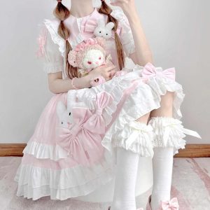 Sweet-style Ruffled-panel Bloomers Crew-neck Suspender Short Skirt