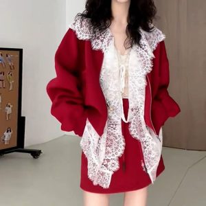 Temperament Leisure Style Red Sweater Baseball Jacket Fashionable All-matching Suit