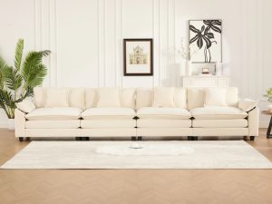 120 Modular Corduroy Sectional Sofa Bed With Storage Modern U-Shaped Design, 4-Seater, Perfect For Living Room, Apartment, Or Lounge, Featuring Cup Holders For Added Convenience