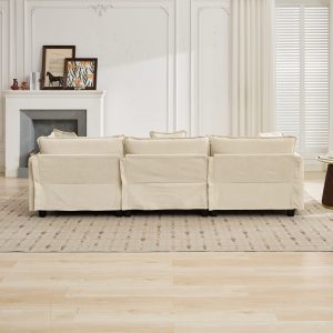 Wider Armrest 3 Seats Ottoman Is Not Included, Modern Sectional Couch, For Living Room Bedroom And Apartment, Comfy Double Layer Upholstered Seat Cushion, Breathable Chenille Fabric,Beige,SW5044BG