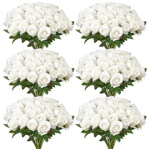 120 Pcs White Roses Artificial Flowers Realistic Bouquet For Xmas Home Decor