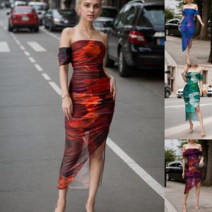 One-shoulder Slim-fit Long-sleeved Knitted Dress With A Body-hugging Silhouette