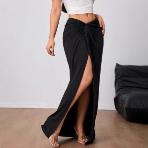 Women’s High-end Elegant Skirt, Autumn And Winter New High-waist Slit Midi Skirt