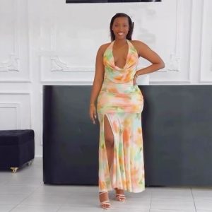 Backless Slim Fit Printed Polyester Women’s Maxi Dress