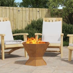 Circular Fire Pit, Wood Burning Fire Pit And Spark Cover, Outdoor Fire Pit Courtyard