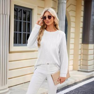 Solid Color Round Neck Loose Long Sleeve