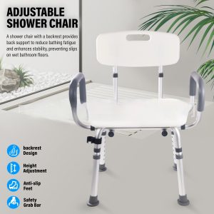 Shower Chair For Inside Shower, Adjustable Height Shower Stool, Non-Slip Bench Bathtub Seat Stool For Elderly Disabled Adults Handicap, 136.1 Kg Capacity