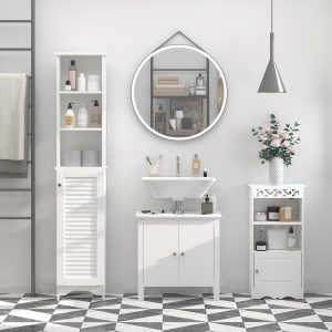 Tall Bathroom Storage Cabinet/Freestanding Tower with 3-Tier Open Adjustable Shelf and Cupboard