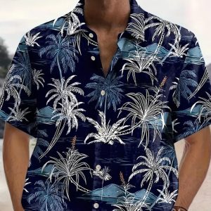 Floral Shirt For Men Cropped Sleeve Quick-Dry Beach Short-Sleeve Floral