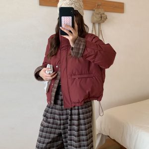 Patchwork Loose Casual Stand Collar Temperament Cotton-padded Jacket