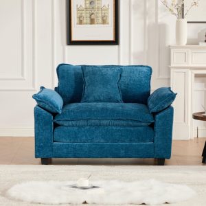 Cloud Sofa Single Seat Ottoman Is Not Included, Modern Sectional Couch, For Living Room Bedroom And Apartment, Comfy Double Layer Upholstered Seat Cushion, Breathable Chenille Fabric, Blue,SW5041BL