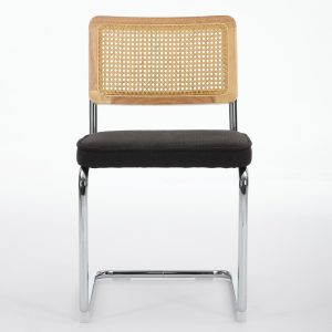 Mid Century Modern Dining Chairs Set Of 2, Velvet Accent Chairs With Natural Cane Back & Stainless Chrome Base, Famous Breuer Designed Chairs, Upholstered Rattan Kitchen Chairs,Black Color,SW1851BK