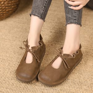 Retro Round Head Leisure Women’s Flat British Style Soft Sole Shoes