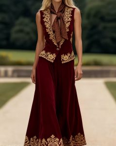 Women’s Sleeveless Suit Collar Button-down Casual Skirt Suit