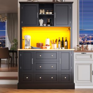 Snack Cabinet, Kitchen Cabinet 115 X 40 X 180 Cm, Tall Kitchen Dining Cabinet, Sideboard, Kitchen Cabinet With Five Drawers And LED Lighting, Suitable For Kitchen, Living Room, Dining Room, Black