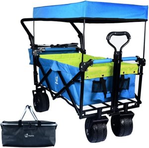 Foldable Double Decker Wagon, 400L Collapsible Wagon Cart With All-Terrain Wheels, Heavy Duty Folding Wagon Cart 350-450 Lb Weight Capacity For Camping, Shopping, Garden, 52″ Extra Long Extender