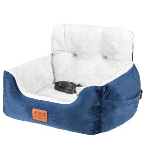 Dog Car Seat, Dog Booster Seat For Car With High Back, A Storage Pocket, Clip-On Safety Leash, PP Cotton Filling, Dog Car Bed For Small Dog Up To 20lbs, Dark Blue+Gray