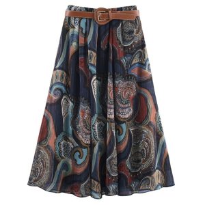 Women’s Belt With Metallic Thread Print Skirt