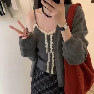 Women’s Solid Color Sweater Cardigan Two-piece Suit