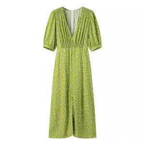 Summer Loose Solid Color Short-sleeve Irregular V-neck Cotton-linen Dress For Women