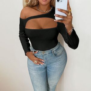 Sexy Off-shoulder Design Long Sleeve Top
