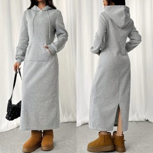Solid Color Hooded Loose Zip All-matching Hoodie Skirt