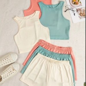 Pajamas Casual Suit Homewear With Braces Solid Color Short Sleeve Cute