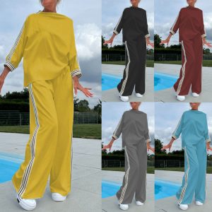 Loose And Simple Solid Color Casual Texture Drawstring Sports Suit