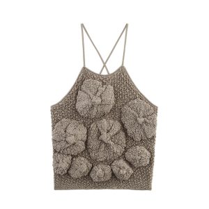 Three-dimensional Flower Design Fluffy Texture Sling Top For Women