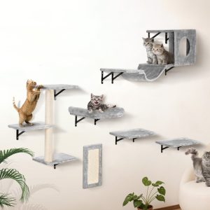 Wall Mounted Cat Shelves, Cat Wall Shelves And Perches With Jumping Boards, Hammock, Sofa, Cat Tree & Cat Grip, Cat Furniture And Shelves Up To 40 Lbs For Sleeping, Playing, Climbing, Set Of 6