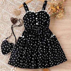Polyester Children’s Heart Printing Stitching Lace Hanging A- Line Skirt
