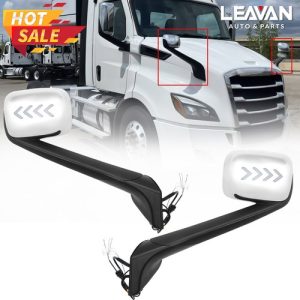 For Freightliner Cascadia 2018 Pair Chrome Heated Hood Mirror W Turn Signal LED