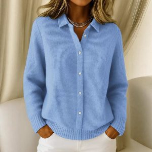 Women’s Shirt Lapel Cardigan Top Solid Color