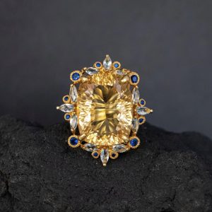 Yellow Gem Women’s Ring Colored Gems Vintage Ice Flower Ornament Large Carat