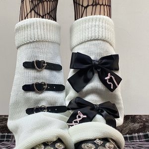 Yabi Style Culture Punk Handmade Knitted Bow Calf Socks