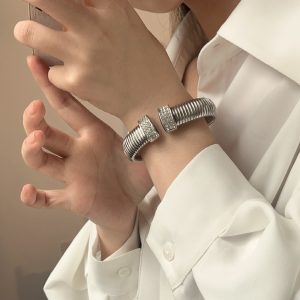 Light Luxury Minority Wide Elastic Vertical Stripes Open-ended Bracelet