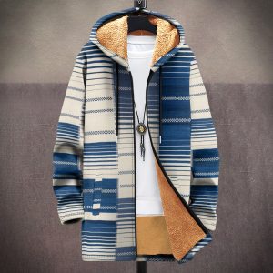 Men’s Multicolor Pattern Zipper Hooded Cardigan