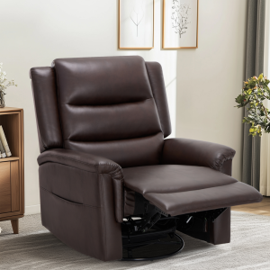 Only Self Pickup–360 Swivel Recliner Chair, Oversized Leather Rocking Manual Recliner With Wide Seat – Chocolate